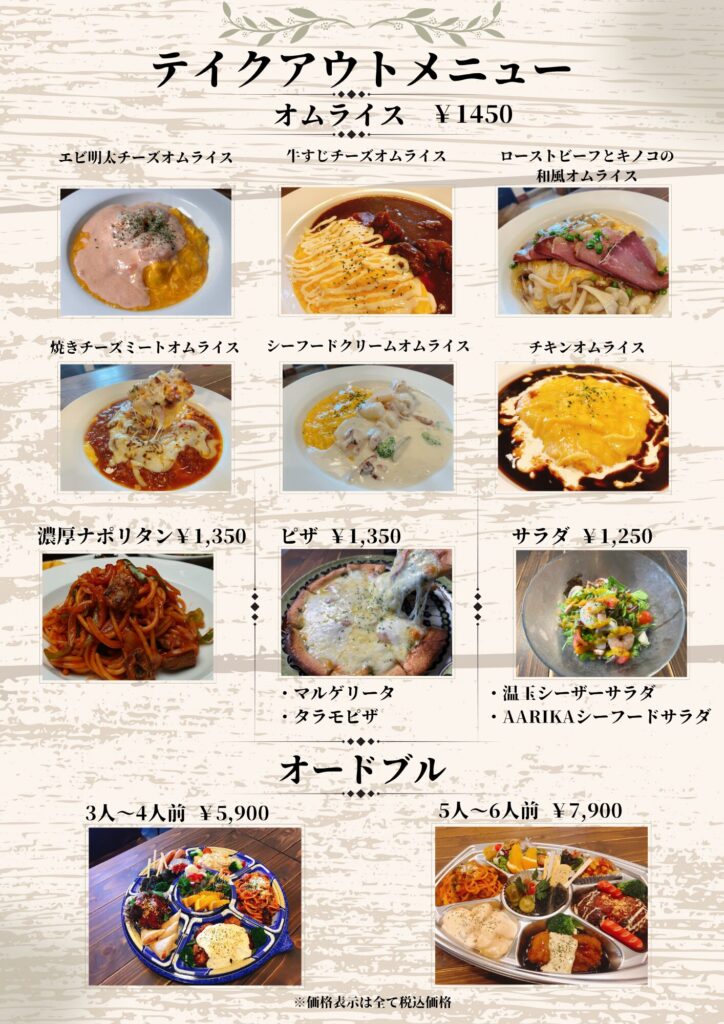 洋食noARIKA・テイクアウト メニュー